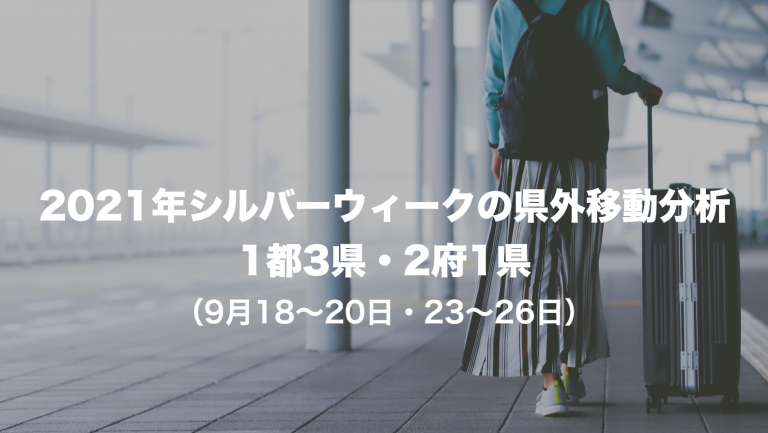 『2021年シルバーウィークの県外移動分析(9/18〜20・23〜26)』レポートを掲載しました 2021.09.27 Agoopホームページの特設サイト「新型コロナウイルス感染症に関する分析」に、『2021年シルバーウィークの県外移動分析(9月18〜20日・23〜26日)』レポートを本日掲載しました。このレポートは、9月18〜20日と23〜26日の大都市圏(1都3県・2府1県)から他県への移動について解析しています。今年のシルバーウィークは、2021年7月四連休やお盆期間に比べ他県への移動は減少傾向となり、シルバーウィーク前半の三連休に比べ近隣への移動が微増となりました。 『2021年シルバーウィークの県外移動分析 1都3県・2府1県(9/18〜20・23〜26)』レポートhttps://corporate-web.agoop.net/pdf/covid-19/agoop_analysis_coronavirus_2021sw.pdf ※今年のシルバーウィークは飛石連休のため、9月21日(火)に三連休(9月18〜20日)の中間報告レポートを掲載しています。 今後も新型コロナウイルス感染症拡大防止対策および経済復興に関わる取り組みを支援するため、価値あるデータを提供できるようまい進していきます。 お知らせ一覧 前の記事 後の記事