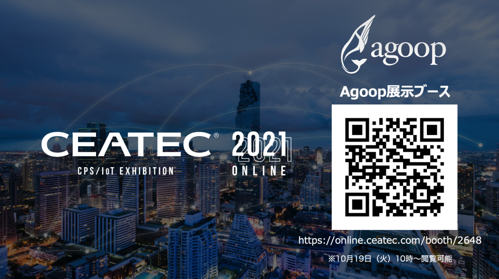 2021年10月19日(火)〜22日(金)開催の「CEATEC 2021 ONLINE」にAgoopがブース出展とセミナー登壇します。