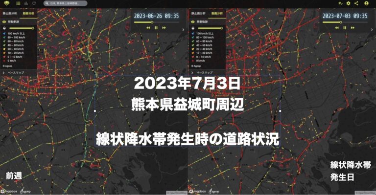「熊本県益城町周辺、線状降水帯発生時の道路状況」を可視化しました 2023.07.06 ホームページの人流ビジュアライズ可視化事例に、新たに「熊本県益城町周辺、線状降水帯発生時の道路状況」を掲載しました。人流データを活用した可視化事例を、ぜひご覧ください人流ビジュアライズ:https://agoop.xyz/knowledge/ お知らせ一覧 前の記事 後の記事