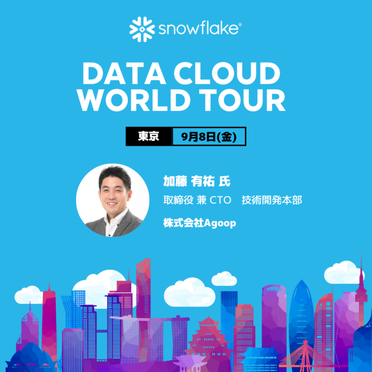 Snowflake「DATA CLOUD WORLD TOUR TOKYO」登壇のお知らせ(9月8日) 2023.08.02 2023年9月8日(金)Snowflake 主催の「DATA CLOUD WORLD TOUR TOKYO」にAgoop取締役の加藤が登壇いたします。本ブレイクアウトセッションでは、「パフォーマンスは7倍へ!大量GPS位置情報データを爆速でSnowflakeへリプレイス成功!」と題して、パフォーマンスアップの効果などを交えてご紹介します。オフラインで無料開催となりますので、ご興味ある方はぜひお申し込みください。 <イベント概要> ・イベント名 DATA CLOUD WORLD TOUR TOKYO ・会場 ANAインターコンチネンタルホテル東京 ・タイトル パフォーマンスは7倍へ!大量GPS位置情報データを爆速でSnowflakeへリプレイス成功! ・開催日時 2023年9月8日(金)13:15 – 13:45 ・登壇者 株式会社Agoop 取締役 兼 CTO 加藤 有祐 ・お申し込み https://www.snowflake.com/events/data-cloud-world-tour-tokyo/?utm_campaign=dm2&utm_source=sales&utm_medium=referral※事前登録制となります お知らせ一覧 前の記事 後の記事